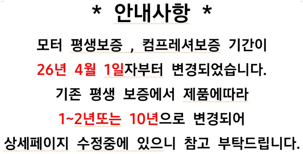 - 핵심부품인 모터 & 컴프레셔 평생 무상보증