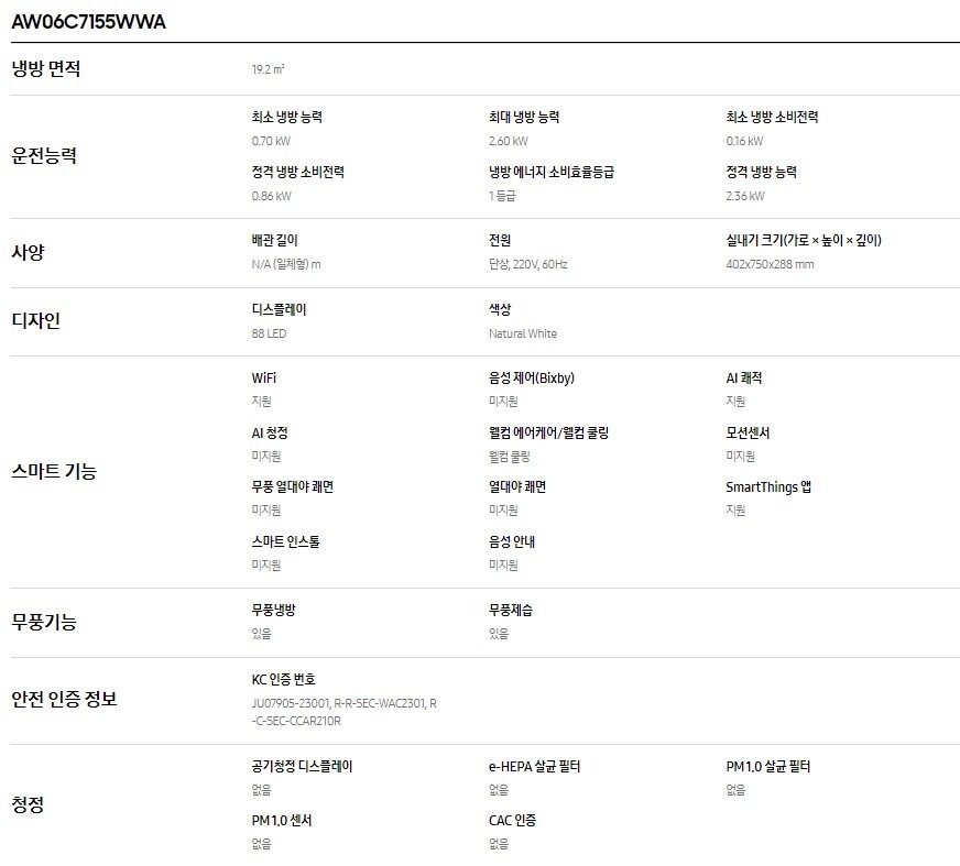 삼성전자 23년 비스포크 윈도우핏 창문형 에어컨 AW06C7155WWA(삼성로지텍설치)