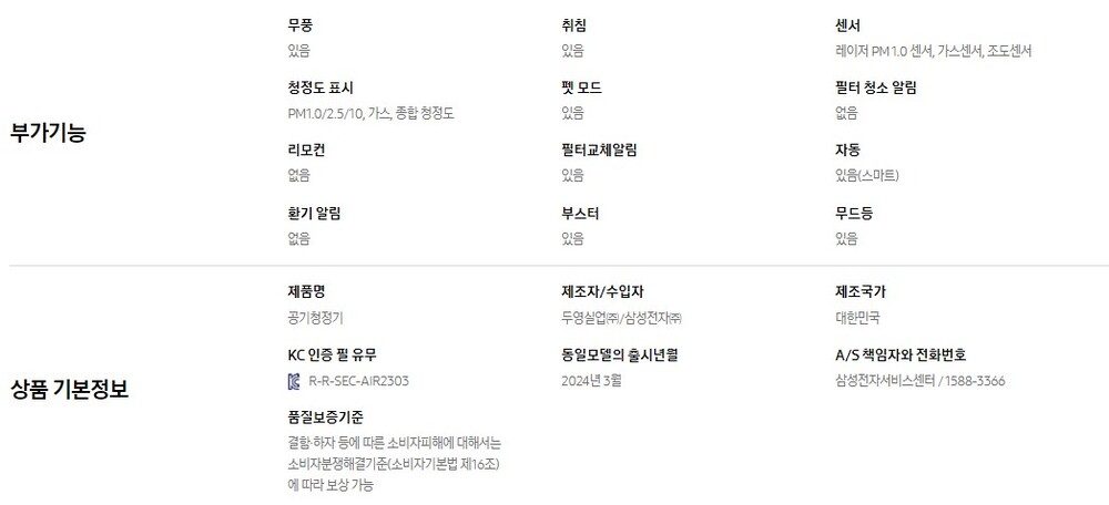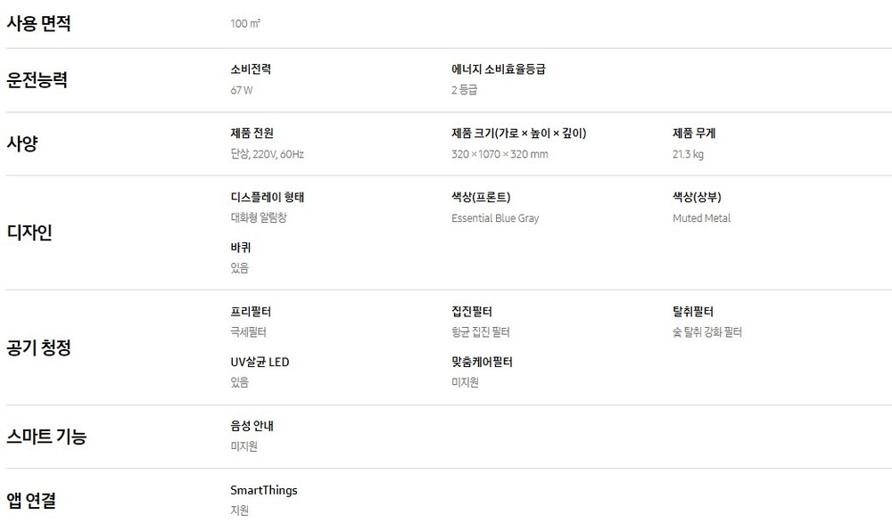 삼성전자 비스포크 인피니티라인 공기청정기 AX100DB900UDD