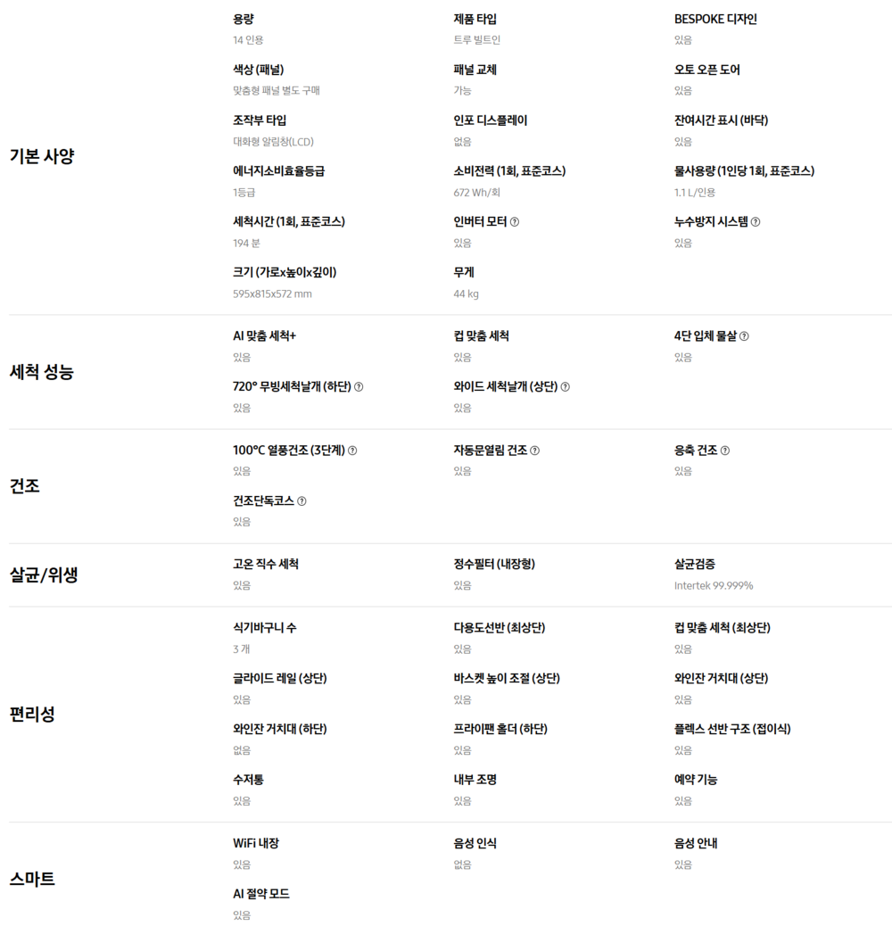 삼성전자 2025 비스포크 AI 트루빌트인 식기세척기 DW99F79E1B00S