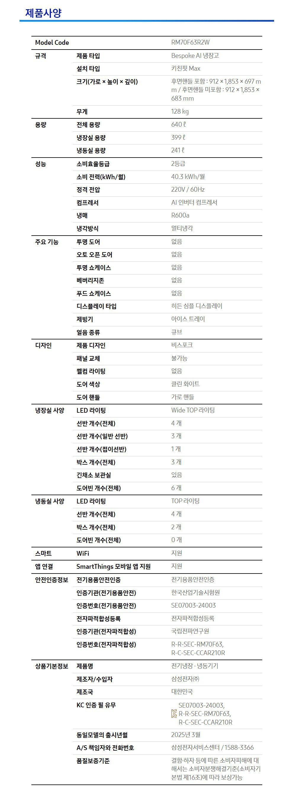 삼성전자 AI 4도어 키친핏 MAX 640L RM70F63R2W 삼성물류 배송설치