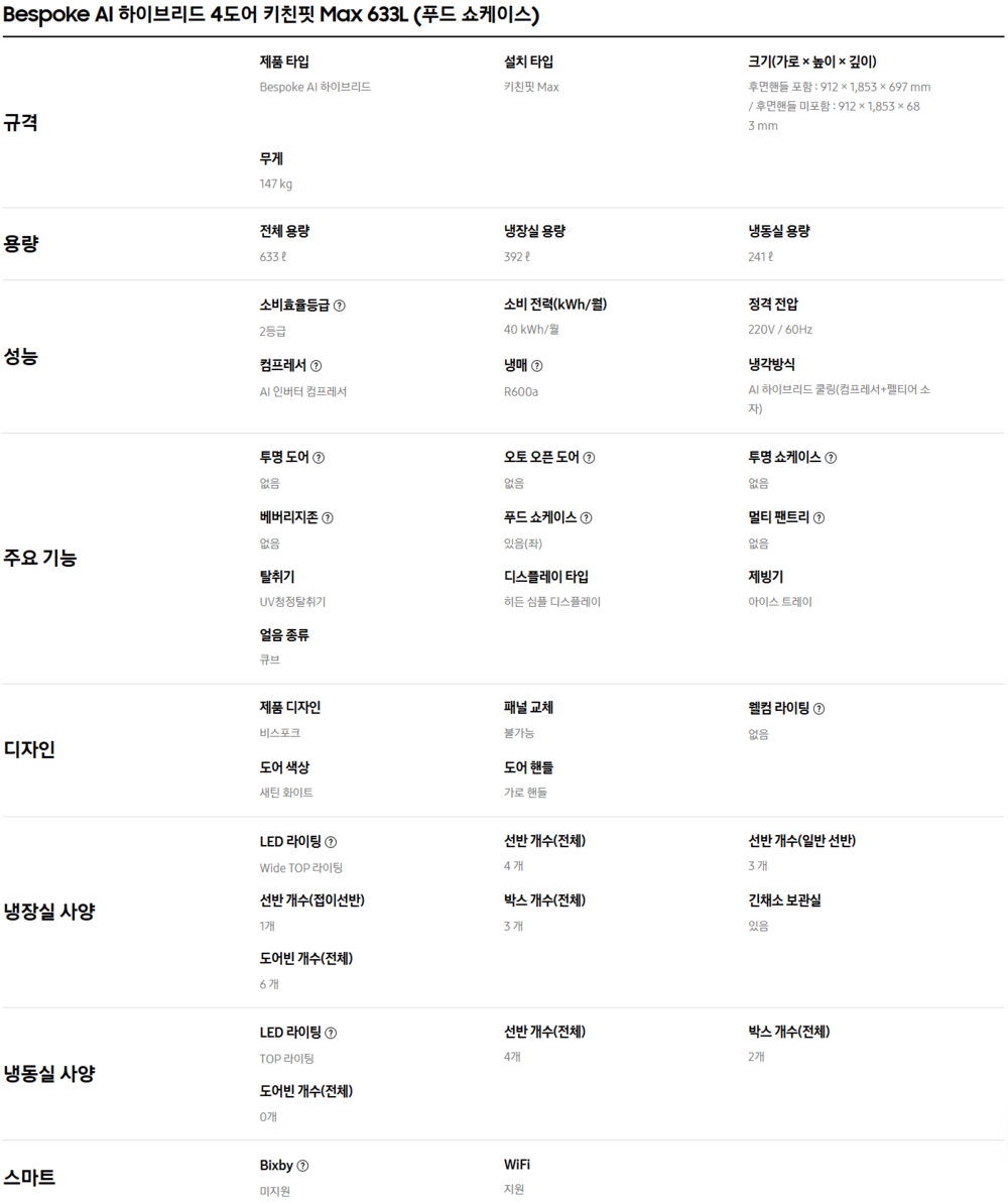 삼성전자 AI 하이브리드 4도어 키친핏 MAX 633L RM70F64M2X 로지텍배송설치