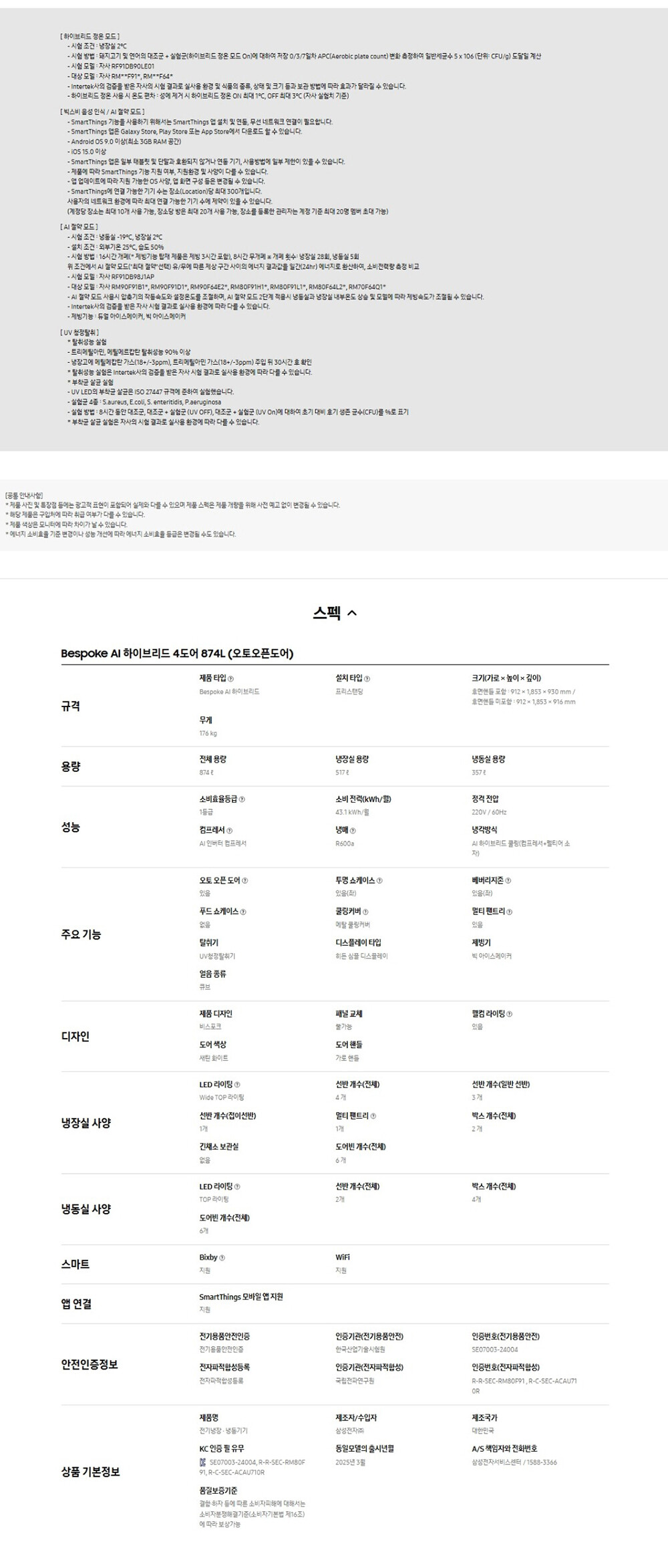 삼성전자 AI 하이브리드 4도어 냉장고 874L RM80F91H1X 삼성물류배송설치