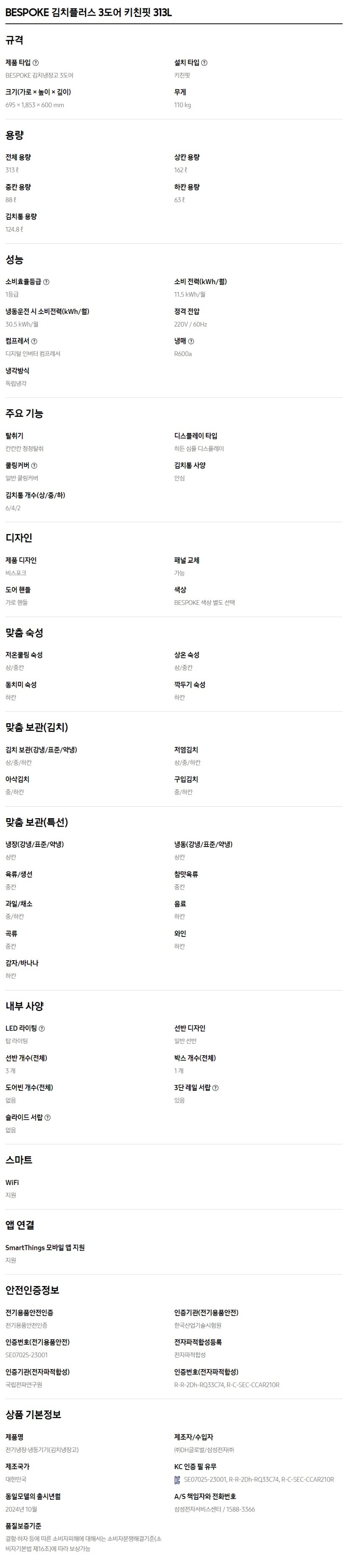 삼성전자 비스포크 김치냉장고 3도어 313L RQ33DB74B1AP 색상선택 로지텍배송설치