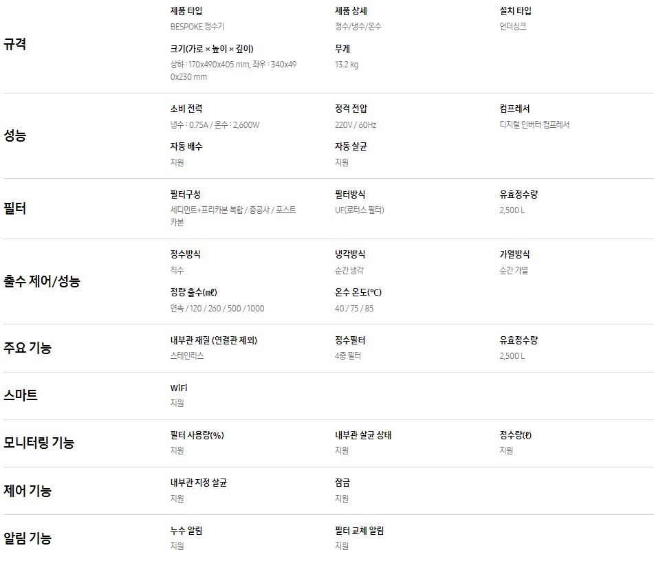 삼성전자 비스포크 정수기 RWP71411AAWM 로지텍 배송 설치상품