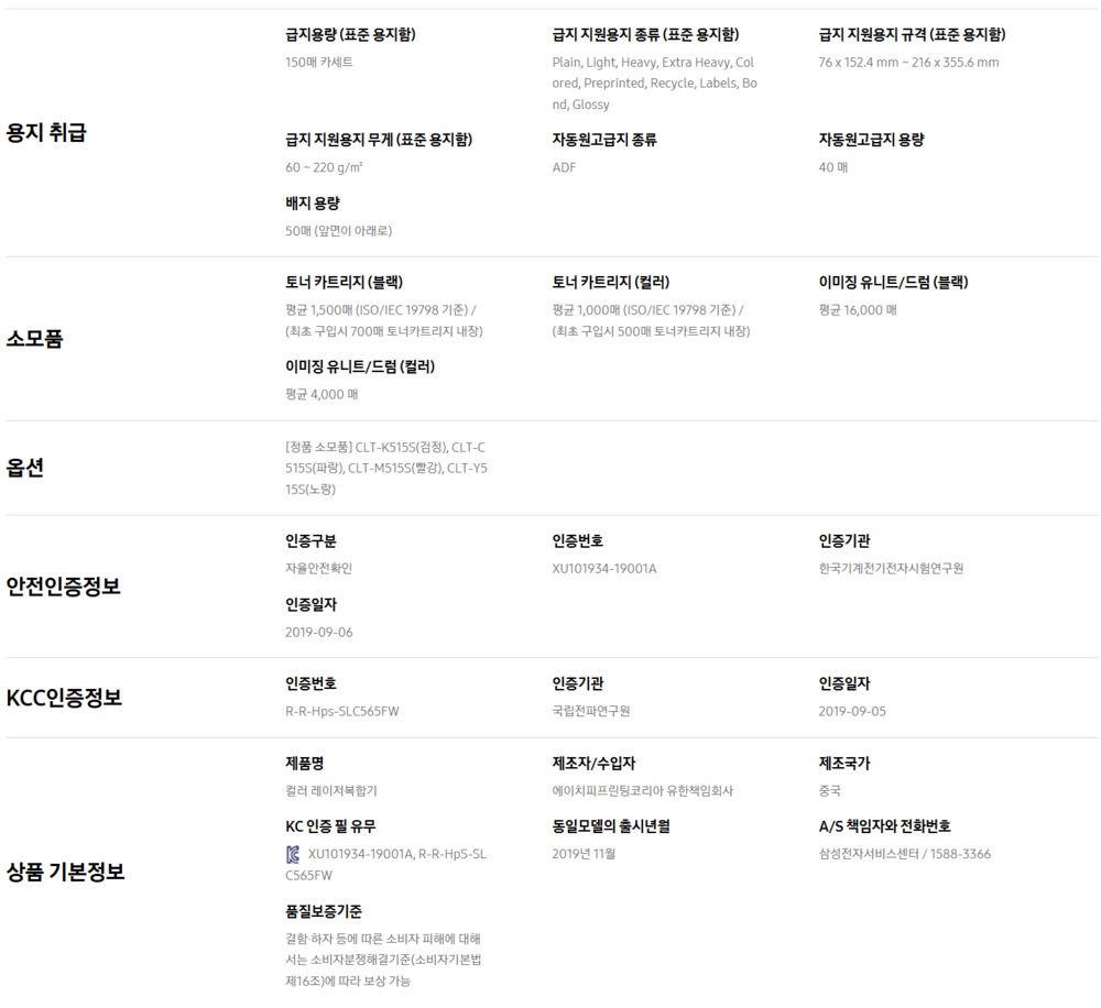 삼성전자 컬러 복합 레이저 프린터 SL-C565FW/HYP (복사,스캔,팩스)