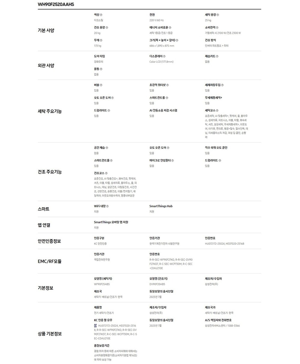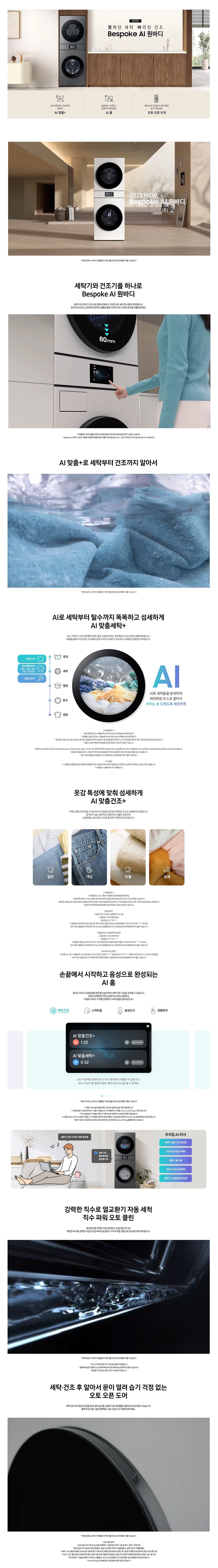 삼성전자 비스포크 AI 원바디 세탁기+건조기 WH90F2520AAHS 25+20KG 로지텍설치