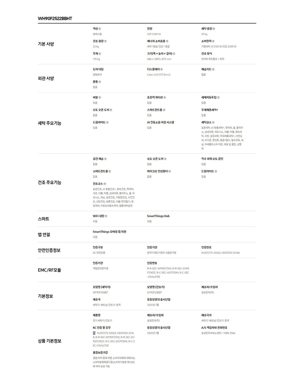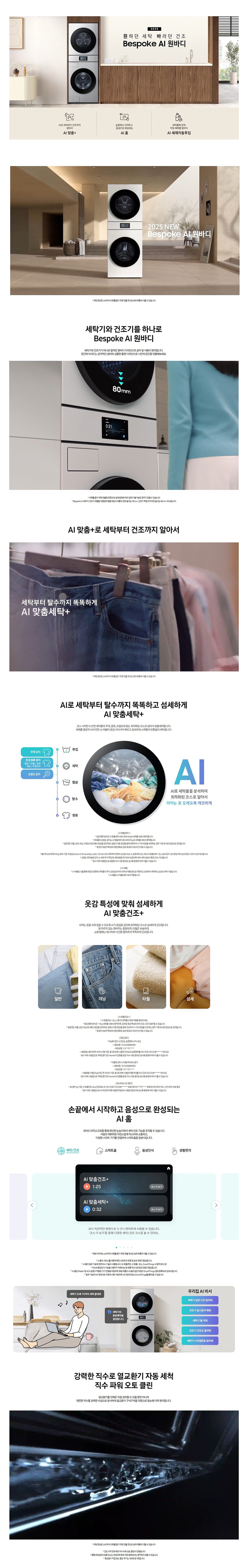 삼성전자 비스포크 AI 원바디 세탁기+건조기 WH90F2522BBHT 25+22KG 로지텍설치